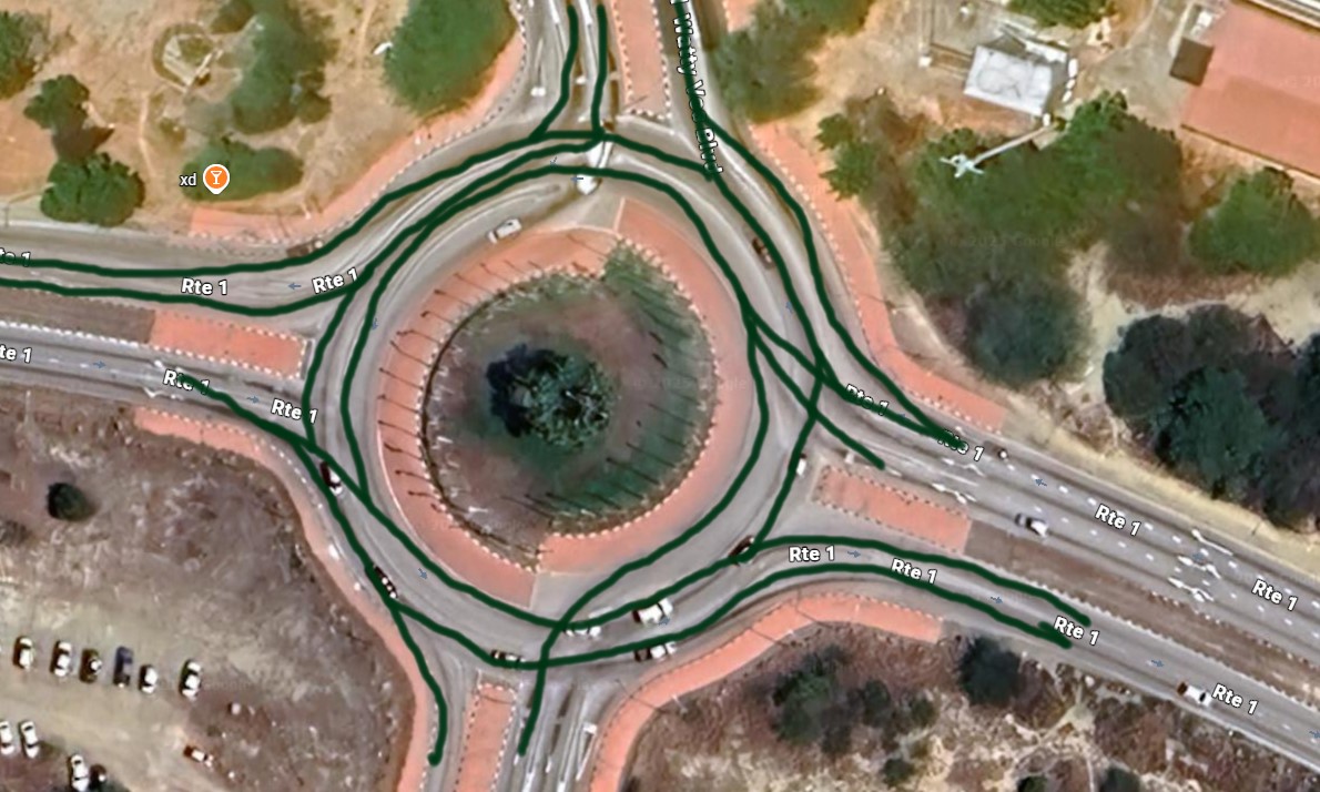 Mir hat vor allen Dingen die Lage unseres Apartments gefallen. Direkt neben einem riesigen Supermarkt, trotzdem fast völlige Stille im Zimmer. 8-10 Minuten zu Fuß zum Eagle Beach, kurze Wege mit dem Auto zu den Sehenswürdigkeiten, eine bunte Mischung an Einheimischen und Touristen, sprachlich wurde spanisch und “einheimisch” gesprochen, amerikanisch war aber auch weit verbreitet, dazwischen ein paar Holländer. Wenn wir an Stränden waren haben wir entweder geschnorchelt oder uns im Wasser aufgehalten, am Strand liegen ist nicht unser Ding, die Liegen sind meist recht unbequem. Am Pool war es besser, dicke Liegenauflagen, Schatten und immer gut für einen kurzen Gang ins Wasser oder zur Toilette. Ein Wort zu den Kreisverkehren: so etwas habe ich bisher noch nie gesehen. Zwischen den Spuren sind Abtrennungen, die einen Spurwechsel verhindern. Man muss also vor der Einfahrt schon wissen, wohin man fahren will und sich dann richtig einordnen, was bei einer zweispurigen Einfahrt in den Kreis kein Problem ist, aber man muss sich schon daran gewöhnen. Wenn man z.B. von rechts kommt und die dritte Ausfahrt nehmen will muss man sich im mittleren oder inneren Kreis einordnen, sonst muss man schon an der zweiten Ausfahrt raus. Für die erste Ausfahrt muss man die äußere Spur nehmen, für die zweite Ausfahrt kann man die äußere und mittlere Spur nehmen. Ein Spurwechsel innerhalb des Kreises ist durch die Spurtrenner nicht möglich.